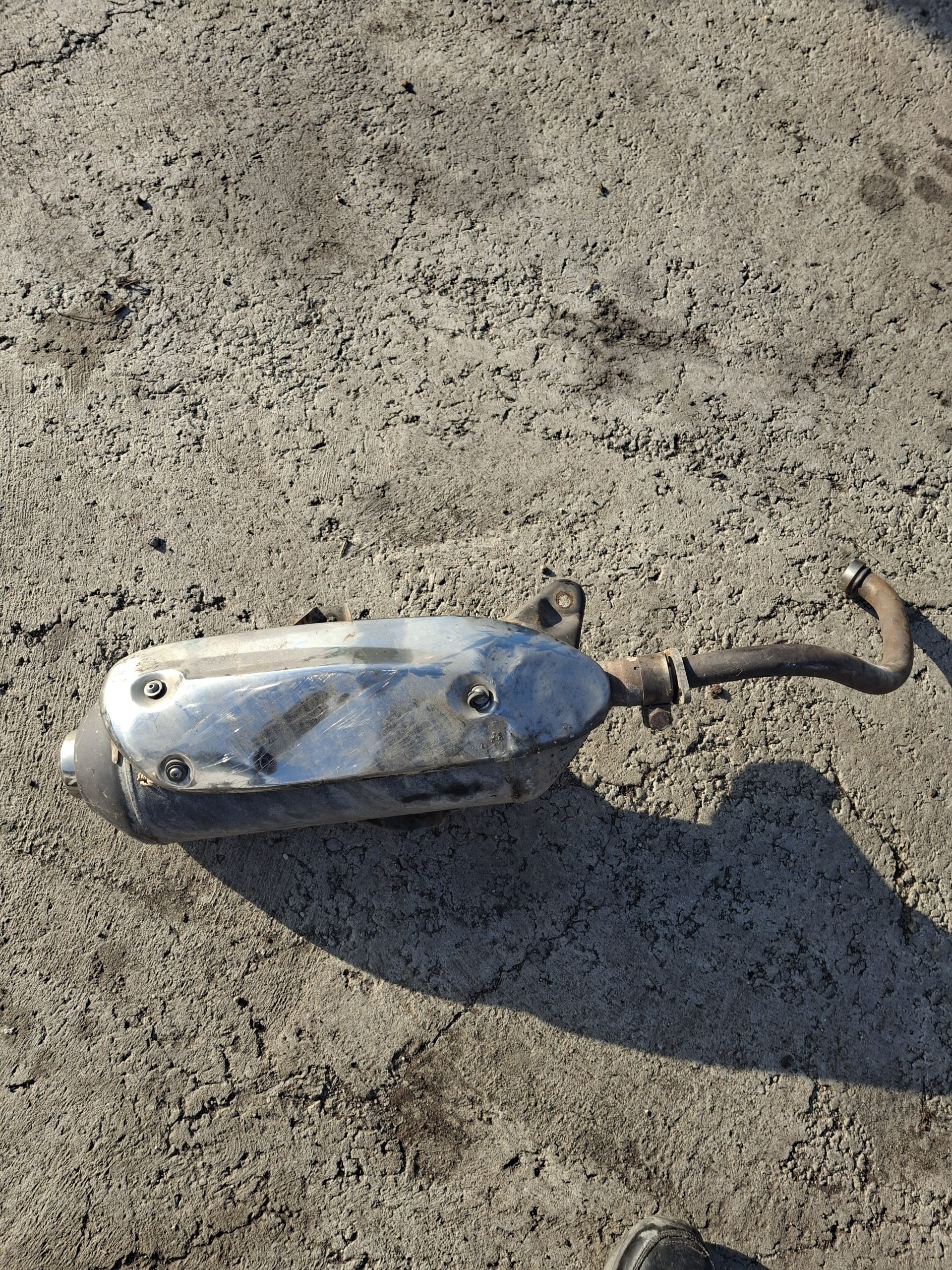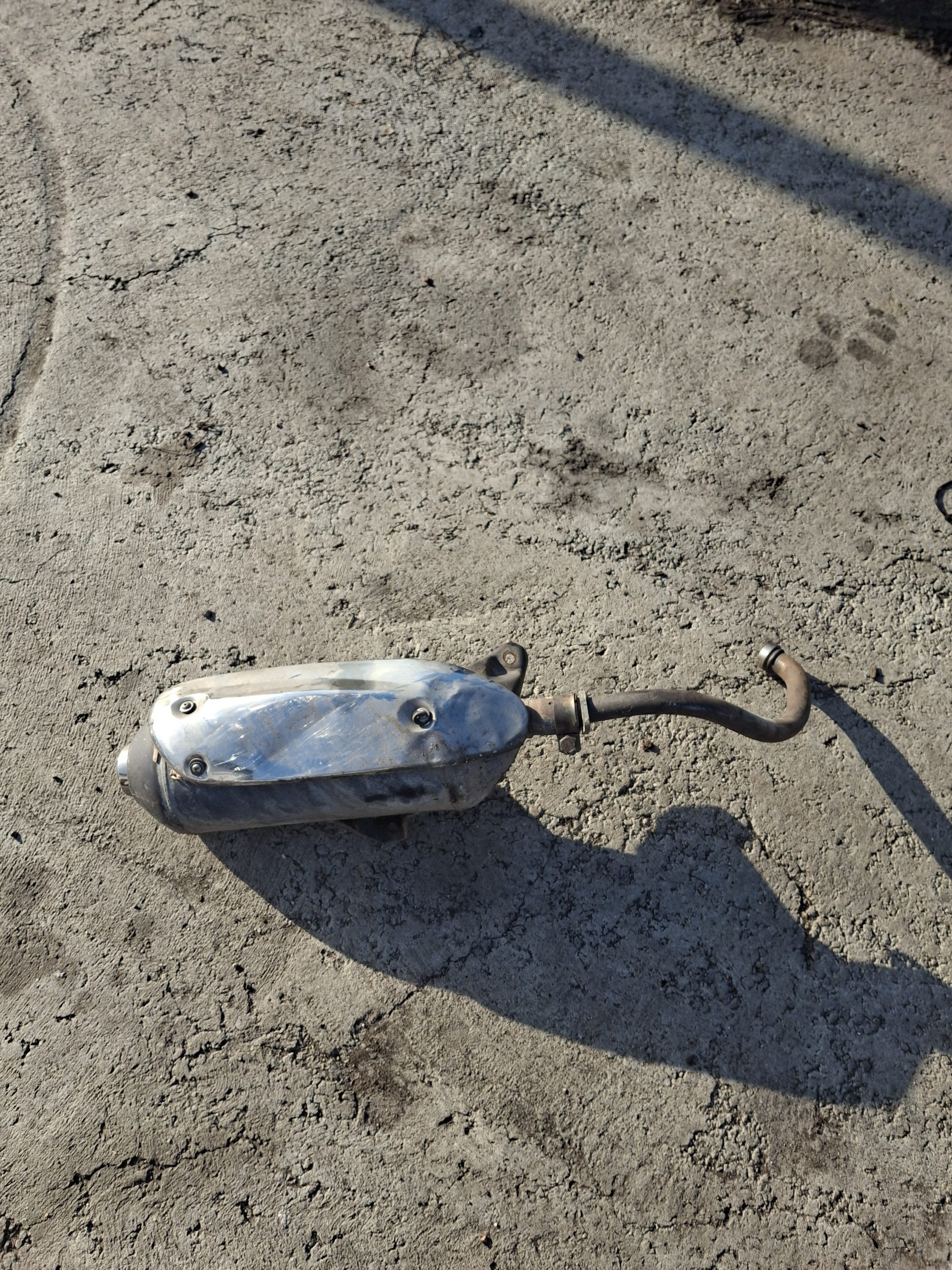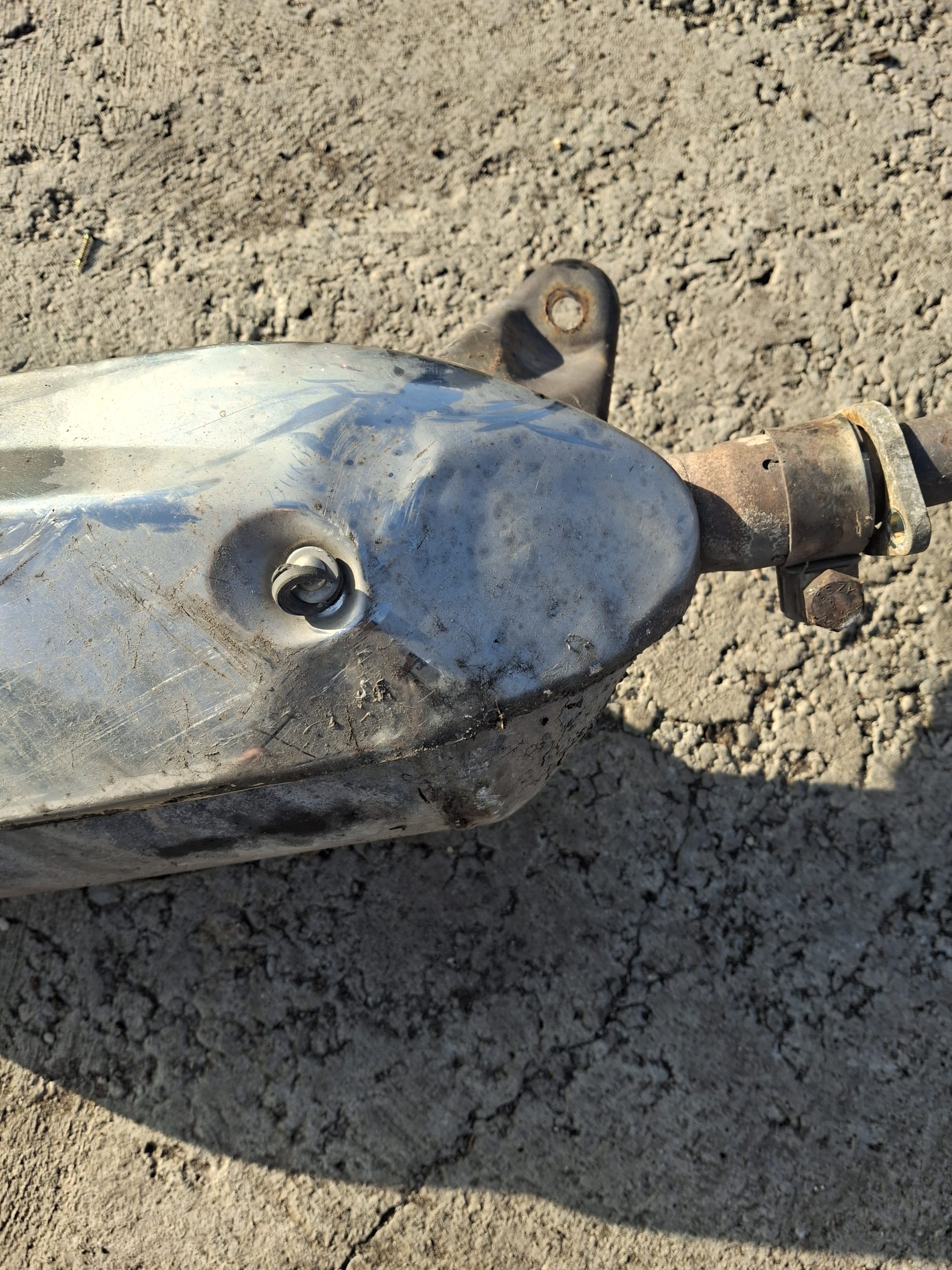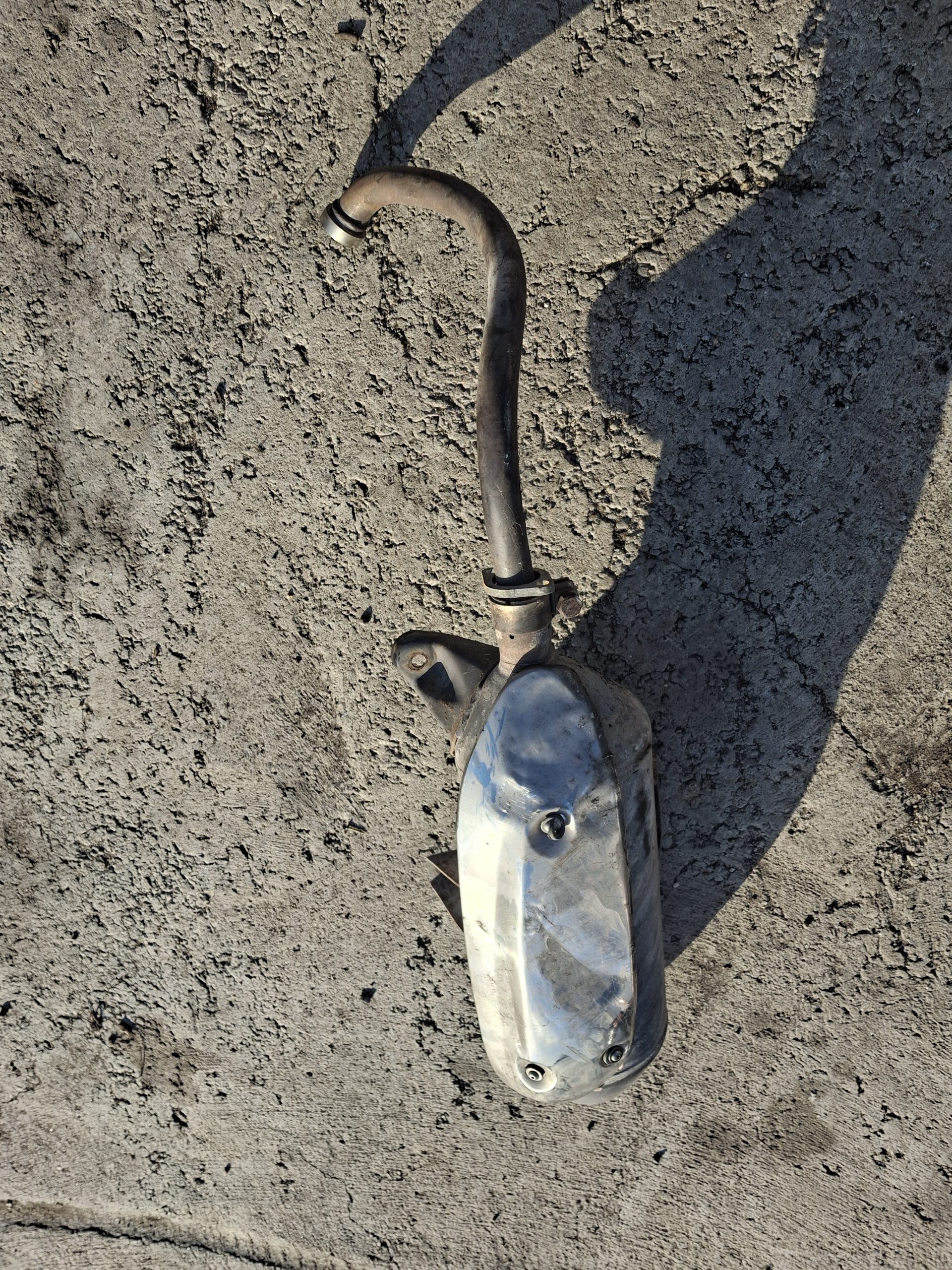 Hibátlan törés, repedés mentes gyári állapotú a kipufogó , a hő védő lemez erősen horpadt , ez a képeken is jól látható.